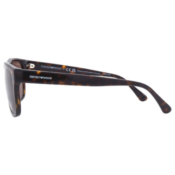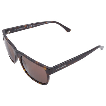 Emporio Armani Sunglasses. Series number: EA4163. Color code: 587973. Shape: Square. Lens Width: 56 mm. Lens Bridge: 19 mm. Arm Length: 145 mm. 100% UV protection. Non-Polarized. Frame Material: Plastic. Frame Color: Shiny Havana. Lenses Type: Dark Brown. Rim Style: Full-Rim. UPC/EAN code: 8056597644037. Emporio Armani Dark Brown Square Men's Sunglasses EA4163 587973 56.