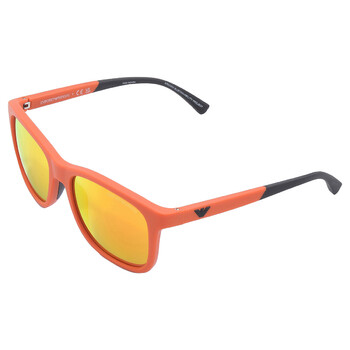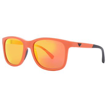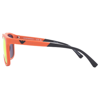 Emporio Armani Sunglasses. Series number: EA4184. Color code: 59326Q. Shape: Rectangular. Lens Width: 49 mm. Lens Bridge: 16 mm. Arm Length: 125 mm. 100% UV protection. Non-Polarized. Frame Material: Plastic. Frame Color: Matte Orange. Lenses Type: Dark Violet Mirrored Red. Rim Style: Full-Rim. UPC/EAN code: 8056597621182. Emporio Armani Dark Violet Mirrored Red Rectangular Men's Sunglasses EA4184 59326Q 49.