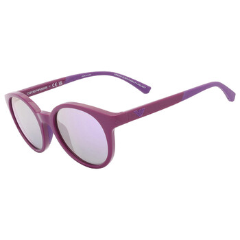 Emporio Armani Sunglasses. Series number: EA4185. Color code: 51154V. Shape: Round. Lens Width: 47 mm. Lens Bridge: 18 mm. Arm Length: 125 mm. 100% UV protection. Non-Polarized. Frame Material: Plastic. Frame Color: Shiny Violet. Lenses Type: Grey Mirror Violet. Rim Style: Full-Rim. UPC/EAN code: 8056597621670. Emporio Armani Grey Mirror Violet Round Ladies Sunglasses EA4185 51154V 47.