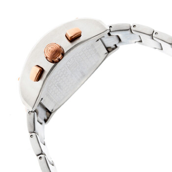 Stainless steel case with a two-tone (silver-tone and rose gold-tone) stainless steel bracelet. Fixed stainless steel bezel. Black dial with luminous rose gold-tone hands and dot hour markers. Arabic numeral minute markers (at 5 minute intervals). Minute markers around the outer rim. Dial Type: Analog. Luminescent hands and markers. Date display between the 4 and 5 o'clock positions. Chronograph - three sub-dials displaying: 60 second, 60 minute and 24 hour. Quartz movement. Scratch resistant mineral crystal. Screw down crown. Screw in case back. Tonneau case shape. Case size: 44 mm. Case thickness: 13 mm. Band width: 22 mm. Fold over clasp with a push button release. Water resistant at 100 meters / 330 feet. Functions: chronograph, hour, minute, second. Dash Series. Casual watch style. Equipe Dash Chronograph Black Dial Two-tone Men's Watch E701.