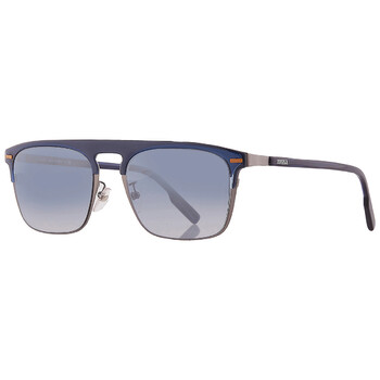 Ermenegildo Zegna Sunglasses. Series number: EZ0216-H. Color code: 90X. Shape: Browline. Lens Width: 56 mm. Lens Bridge: 20 mm. Arm Length: 145 mm. 100% UV protection. Non-Polarized. Frame Material: Metal. Frame Color: Shiny Blue. Lenses Type: Blue Mirror. Rim Style: Full-Rim. UPC/EAN code: 889214401595. Ermenegildo Zegna Blue Mirror Browline Men's Sunglasses EZ0216-H 90X 56.