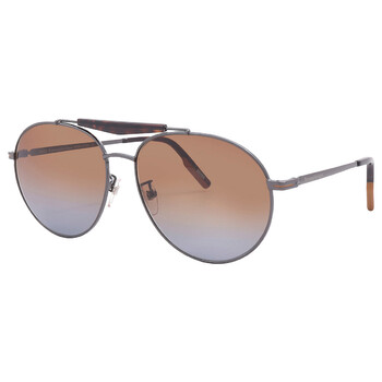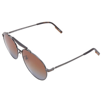 Ermenegildo Zegna Sunglasses. Series number: EZ0154-F. Color code: 12F. Shape: Pilot. Lens Width: 62 mm. Lens Bridge: 16 mm. Arm Length: 145 mm. 100% UV protection. Non-Polarized. Frame Material: Metal. Frame Color: Shiny Dark Ruthenium. Lenses Type: Brown Gradient. Rim Style: Full-Rim. UPC/EAN code: 889214143815. Ermenegildo Zegna Brown Gradient Pilot Men's Sunglasses EZ0154-F 12F 62.