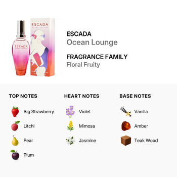 Step into a world of sun-kissed bliss with Escada Ocean Lounge Eau de Toilette Spray for Ladies. Launched in 2008 by the iconic German fashion house Escada, this 1.7 oz fragrance captures the carefree spirit of summer with every spritz. Designed for women who love to radiate confidence and charm, Ocean Lounge is a vibrant scent that perfectly blends fruity sweetness with soft floral notes and a warm, inviting base.