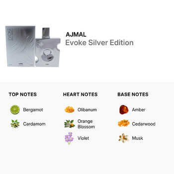 Perfect for men who appreciate a well-balanced blend of spicy, woody, and floral notes, Evoke Silver Edition by Ajmal is a must-have addition to any fragrance collection. This item is only valid for shipment in the Contiguous United States & Canada.