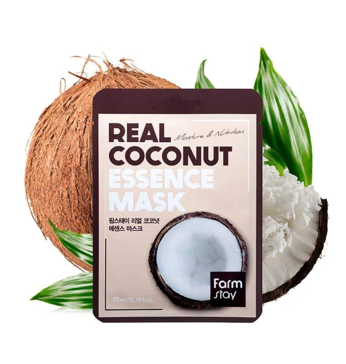 Real Essence Coconut Mask ჰიალურონის მჟავისა და ქოქოსის ნიღაბი ღრმად ატენიანებს კანს. ფორმულაში შემავალი კოლაგენი და E ვიტამინი ანიჭებს კანს ელასტიურობას და ბზინვარებას.