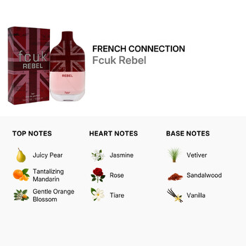 Crafted by the iconic design house French Connection, Fcuk Rebel is a perfect everyday perfume for women who love a mix of elegance and edge. Housed in a sleek, modern bottle, this 3.4 oz EDP spray makes a great gift or a signature scent for your personal collection. Whether you're headed to work or out for the evening, Fcuk Rebel keeps you feeling fresh, fierce, and undeniably you.
