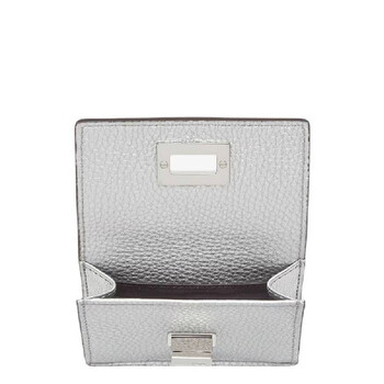Fendi Ladies Wallets. SKU: 8M0426-AQEV-F0MK5. Color: Argento/Palladio. Size: H: 7 cm × D: 3.5 cm × W: 9.5 cm. Fendi Argento/Palladio Ladies Peekaboo Micro Tri-fold Wallet. This wallet features a tri-fold design with a spacious interior compartment for bills, three hidden card slots, an exterior coin case with an twist lock and palladium-finished metal parts. 100% calf leather, Inside: 100% calf leather, 50% cotton, 42% polyamide, 8% resin. Made in Italy.