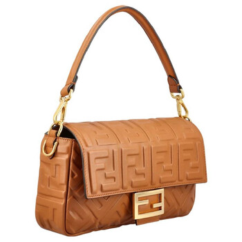 Fendi Ladies Crossbody. SKU: 8BR600A72VF1C0G. Size: H: 15 cm × D: 6 cm × W: 27 cm. Fendi Baguette Embossed Logo Crossbody Bag. This crossbody bag is crafted from soft nappa leather with a three-dimensional textured embossed logo motif, designed with an FF clasp. It features a front flap with a magnetic clasp, an internal compartment with a zip pocket, and gold-finish metalware. This bag can be carried by hand or worn on the shoulder or cross-body with its detachable shoulder strap. 100% Leather. Made in Italy.