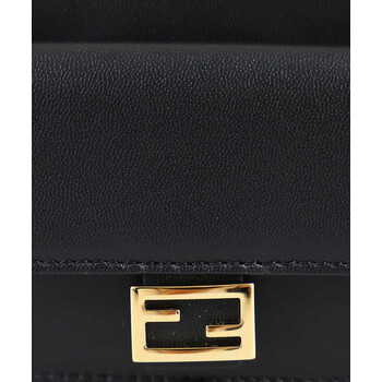 Fendi Ladies Card Case. SKU: 8M0423-AAJD-F0KUR. Color: Black. Fendi Black Baguette FF Card Holder. Crafted from nappa leather and designed with gold-tone metal Baguette applique on the flap. Featuring snap button closure, ticket pocket, central flat compartment, three credit card slots on the back and embossed FF motif. Dimensions L 3.9" x H 3.1" x D1".