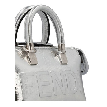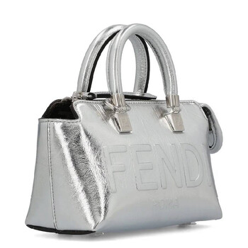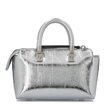 Fendi Ladies Handbag. SKU: 8BS067-AJQB-F0MK5. Color: Argento/Palladio. Size: H: 12 cm × D: 9 cm × W: 20.5 cm. Fendi By The Way Embossed Logo Handbag. This handbag is crafted from laminated leather with a craquele effect, featuring embossed logo lettering, tone-on-tone tubular handles, a zipped fastening, a lined interior with a pocket, and palladium-finish metalware. 100% lamb leather, inside: 64% polyester, 23% cotton, 13% polyurethane. Made in Italy.