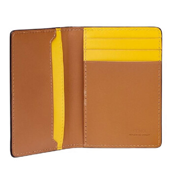 Fendi Men's Card Case. SKU: 7M0349-AJF4-F1F2S. Color: Sand/Mimosa/P. Fendi Compact Bi Fold Card Holder. This Card Holder features three inside card slots and one flat pocket inside and on the back. 100% Calf Skin. Made In Italy.