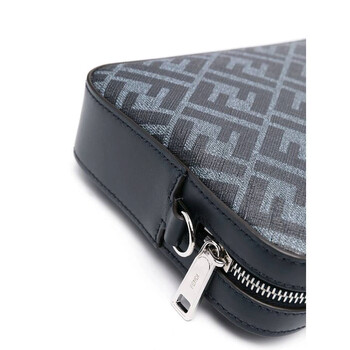 Fendi Men's Crossbody. SKU: 7M0286-ASIC-F1O97. Color: Denim Blu/Blu Scr/P. Size: H: 15 cm × D: 4.5 cm × W: 22 cm. Fendi Diagonal Stripe FF Motif Camera Crossbody Bag. This crossbody bag is made of leather with a textured stripe FF motif and a tone-on-tone diagonal insert. It features a zipped fastening, a lined interior, and palladium-finished metalware. This bag also includes an adjustable and detachable technical fabric cross-body shoulder strap with logo lettering. Canvas 100%, Calf Leather 100%. Made in Italy.