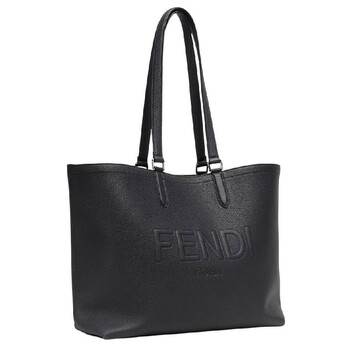 Fendi Men's Tote. SKU: 7VA610-ARD9-F0GXN. Color: Black/Palladio. Size: H: 30 cm × D: 15 cm × W: 40 cm. Fendi Embossed Logo Leather Tote Bag. This tote bag features full-grain leather with an embossed logo, two leather handles, a spacious main compartment lined in fabric, a leather zipper pocket, and palladium-finish metalware. 100% calf leather, interior: 60% polyamide, 40% polyurethane. Made in Italy.