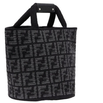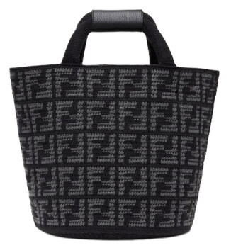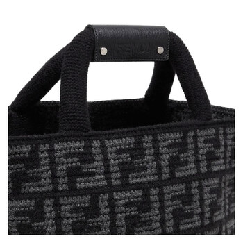 Fendi Men's Tote. SKU: 7VA602-APDH-F1MLQ. Material: Cashmere;Leather;Polyamide. Color: Black/Asf/Black/P. Size: 32cm x 30cm x 42cm. Fendi FF Cashmere Blend Shopping Bag. The cashmere knit shopper bag features an FF motif in shades of gray and black. A special treatment of the yarn gives the bag a compact, durable finish. It is unlined and has padded handles with black leather detailing, along with a snap-button closure. 65% cashmere, 35% polyamide, 100% calf leather. M ade in Italy.