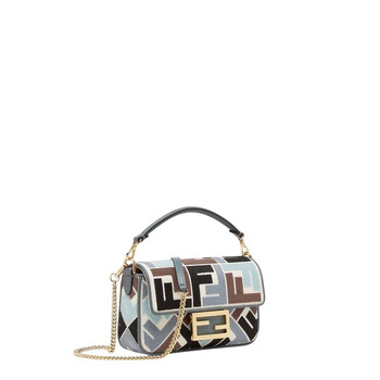 Fendi Ladies Shoulder Bag. SKU: 8BS017-ARC2-F1OPK. Size: H:12cm x W:20cm x D:5cm. Fendi FF Mini Baguette Bag. This bag features an embossed FF motif, a front flap with an FF clasp and magnetic closure, an internal compartment with a pocket and metalware, along with a detachable handle and chain shoulder strap. 60% cotton, 25% polyamide, 15% polyurethane. Made in Italy.