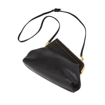 Fendi Ladies Clutch. SKU: 8BP129-ABVE-F0KUR. Barcode: 2004003544248. Color: Black. Size: H: 18 cm x D: 9.5 cm x W: 26 cm. Fendi First Small Nappa Leather Clutch. The small Fendi First bag, made from soft nappa leather with a tone-on-tone nappa leather-wrapped macro F metal closure, boasts a fabric-lined interior with the iconic FF motif, gold-finish hardware, a detachable shoulder strap, and the flexibility to be styled as a clutch or shoulder bag, expertly crafted in Italy. Material: Lamb leather (nappa).