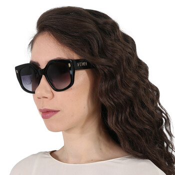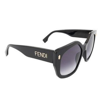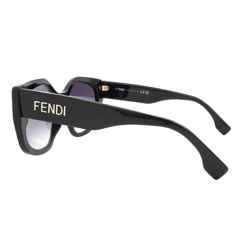 Fendi Sunglasses. Series number: FE40017I. Color code: 01W. Shape: Geometric. Lens Width: 55 mm. Lens Height: 52.7 mm. Lens Bridge: 19 mm. Arm Length: 145 mm. 100% UV protection. Frame Material: Acetate. Frame Color: Shiny Black. Lenses Type: Gradient Blue. Rim Style: Full-Rim. UPC/EAN code: 192337114328. Fendi Gradient Blue Geometric Ladies Sunglasses FE40017I 01W 55.