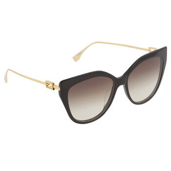 Fendi Sunglasses. Series number: FE40011U. Color code: 01F. Shape: Cat Eye. Lens Width: 57 mm. Lens Bridge: 16 mm. Arm Length: 140 mm. 100% UV protection. Non-Polarized. Frame Material: Acetate. Frame Color: Shiny Black. Lenses Type: Gradient Brown. Rim Style: Full-Rim. UPC/EAN code: 192337087028. Fendi Gradient Brown Cat Eye Ladies Sunglasses FE40011U 01F 57.