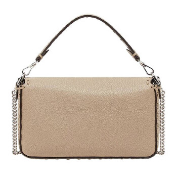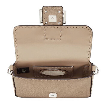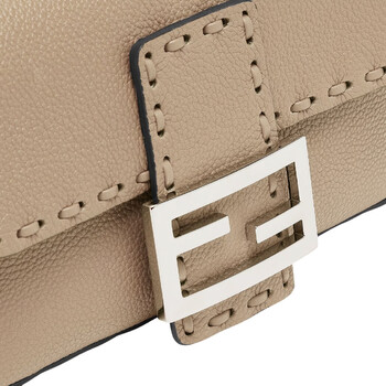 Fendi Ladies Shoulder Bag. SKU: 8BS017-ARBB-F04Y9. Color: Corda/Palladio. Fendi Iconic Front Flap Baguette Bag. This bag features a front flap, magnetic clasp, internal compartment and pocket, decorated with an FF clasp and it has a detachable shoulder strap. 5.118"*7.874"*1.969". 100% Calf Leather. Made In Italy.