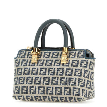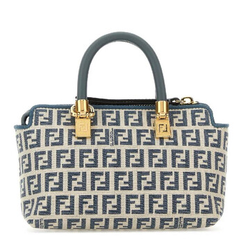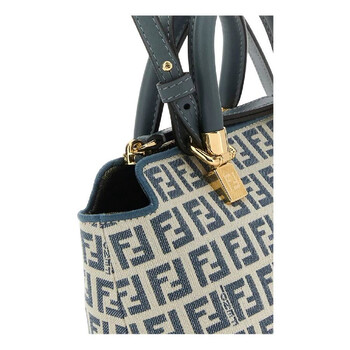 Fendi Ladies Boston Bag. SKU: 8BS067-ARBN-F1NPH. Color: R.Tempesta/Panna/Os. Size: H: 12 cm × D: 9 cm × W: 20.5 cm. Fendi Jacquard Motif Boston Bag. This bag is made of micro FF motif jacquard fabric and is embellished with leather details and tone-on-tone leather tubular handles. It features a zipper closure, a lined interior with a pocket, and gold-finish metalware. This bag can be carried by hand using the handles or on the shoulder or cross-body with the adjustable, detachable strap. 34% cotton, 12% polyester, 27% polyamide, 27% polyurethane, 100% calf leather, inside: 64% polyester, 23% cotton, 13% polyurethane. Made in Italy.