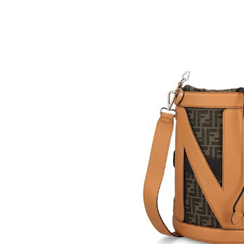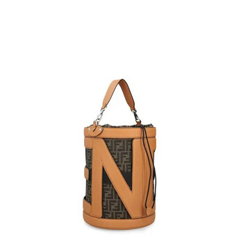 Fendi Men's Belt Bag. SKU: 7VA589-AMAH-F1KAT. Size: H:47cm x W:26cm x D:26cm. Fendi Leather Bucket Bag. This bucket bag features a brown jacquard motif, a cylindrical shape defined by FENDI lettering, an internal compartment with a drawstring closure, palladium-finish metalware, a detachable shoulder strap, and a leather handle. 100% Calfskin. Made in Italy.
