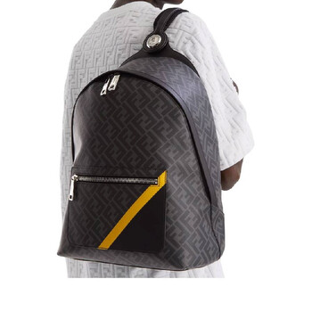 Fendi Men's Backpack. SKU: 7VZ076-A9XS-F0R2A. Color: Black/Sunflower/Pall. Fendi Leather Structured Backpack. This Backpack features a compartment with a double slider zipper and inner zipper pocket, a laptop compartment on the back and it can also be worn as a one shoulder style. 16.929"*12.992"*5.512". 100% Calf Leather. Made In Italy.
