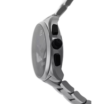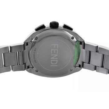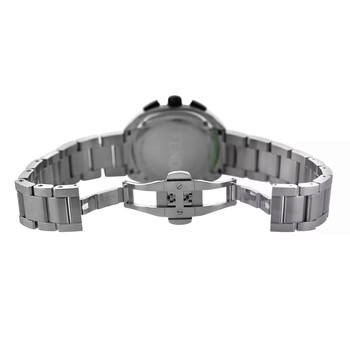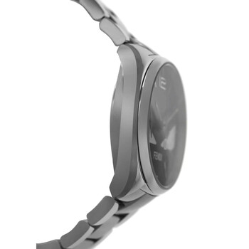 Silver-tone stainless steel case and bracelet. Fixed silver-tone stainless steel bezel. Blue dial with black hands and Arabic numeral & index hour markers. Dial Type: Analog. Luminescent hands and markers. Date display between 4 and 5 o'clock position. Quartz movement. Solid case back. Round case shape, case size: 40 mm. Fold over clasp with a safety release. Functions: date, hour, minute, second. Momento Bugs Series. Luxury watch style. Fendi Momento Bugs Quartz Blue Dial Men's Watch F215013500.