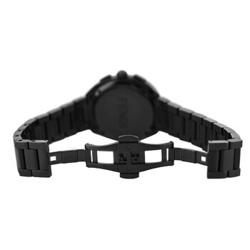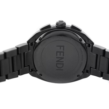 Black stainless steel case and bracelet. Fixed black stainless steel bezel. Brown dial with black hands and Arabic numeral & index hour markers. Dial Type: Analog. Luminescent hands and markers. Date display between 4 and 5 o'clock position. Quartz movement. Solid case back. Round case shape, case size: 40 mm. Fold over clasp with a safety release. Functions: date, hour, minute, second. Momento Bugs Series. Luxury watch style. Fendi Momento Bugs Quartz Brown Dial Men's Watch F215716400.