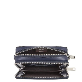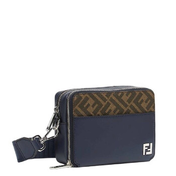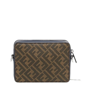 Fendi Men's Shoulder Bag. SKU: 7M0357-AFF2-F1M6D. Color: Midnight/Tbmr/P. Size: H: 14 cm × D: 6.5 cm × W: 17.5 cm. Fendi Monogram Pattern Logo Shoulder Bag. This bag features the signature Zucca monogram pattern, leather trim, an adjustable detachable shoulder strap, and a slip pocket on the front. It includes a logo plaque, a front zip-fastening compartment, a main compartment, an internal logo patch, full lining, finished with logo-engraved silver-tone hardware, a branded zip puller, and a top zip fastening. 100% calfskin, 45% cotton, 40% polyurethane, 15% polyester, inside: 50% cotton, 42% polyamide, 8% resin. Made in Italy.