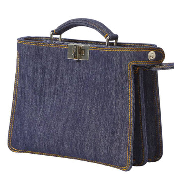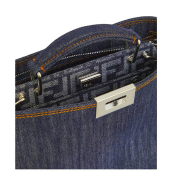 Fendi Men's Crossbody. SKU: 7VA530-AMA5-F1KAA. Material: Cotton. Color: Denim/Denim/Blu/P. Size: 25cm x 26cm x 10cm. Fendi Peekaboo ISeeU Mini Bag Denim-Effect Fabric. This bag features a fixed top handle, an adjustable and detachable shoulder strap, a front turn-lock closure, and a back zip fastening. It includes two main interior compartments separated by a stiff jacquard FF denim partition, along with a detachable inner pocket made of the same fabric. Finished with palladium-tone hardware. 100% Cotton. Made in Italy.