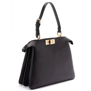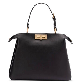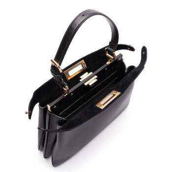 Fendi Ladies Handbag. SKU: 8BN353-AOVH-F0KUR. Color: Black/Oro Soft. Size: H: 25.5 cm × D: 10 cm × W: 33 cm. Fendi Peekaboo Leather Handbag. This bag is made of calf leather with a silky texture and suede lining, featuring an iconic metal clasp fastening on both sides, two internal compartments separated by a stiff partition, an adjustable top handle and an internal logo stamp. Calf Leather 100%, Lining: Suede 100%.
