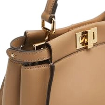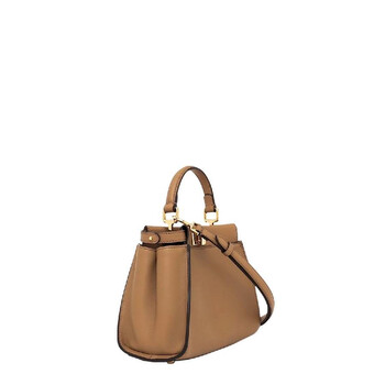 Fendi Ladies Handbag. SKU: 8BN244-AQ09-F1IR8. Size: H:18cm x W:23cm x D:11cm. Fendi Peekaboo Mini Shoulder Leather Bag. This bag features a fabric lining with a jacquard FF motif, a leather-bound bar, two interior compartments separated by a stiff partition, an inner zip pocket, gold-finish metalware, a classic twist lock on both sides, a handle, and an adjustable, detachable shoulder strap. 100% Calf Leather. Made in Italy.