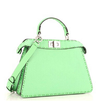 Fendi Ladies Top Handle Bag. SKU: 8BN327-ANT2-F1L1C. Color: Edamame/P. Fendi Peekaboo Top Handle Leather Bag. This bag features a detachable and adjustable strap, a top handle, one inside pocket, and a twist-and-lock closure with the brand's name engraved. It also showcases a stitched design around the edges. 100% Leather. Made in Italy.