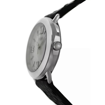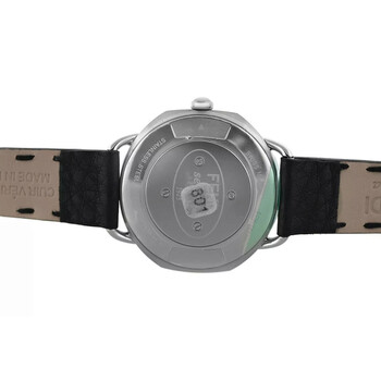 Silver-tone stainless steel case with a black leather strap. Fixed silver-tone stainless steel bezel. White dial with silver-tone hands and Roman & index hour markers. Minute markers around the outer rim. Dial Type: Analog. Luminescent hands and markers. Quartz movement. Solid case back. Round case shape, case size: 36 mm. Buckle clasp. Water resistant at 50 meters / 165 feet. Functions: hour, minute, second. Selleria Series. Luxury watch style. Watch label: Swiss Made. Fendi Selleria Quartz White Dial Men's Watch F8020345H0.