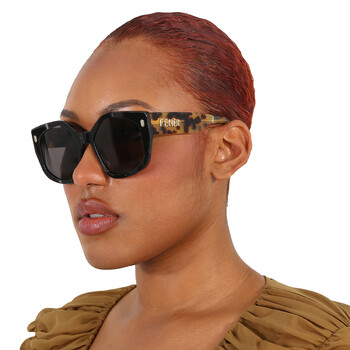 Fendi Sunglasses. Series number: FE40017I. Color code: 01A. Shape: Geometric. Lens Width: 55 mm. Lens Height: 52.7 mm. Lens Bridge: 19 mm. Arm Length: 145 mm. 100% UV protection. Frame Material: Acetate. Frame Color: Shiny Black. Lenses Type: Smoke. Rim Style: Full-Rim. UPC/EAN code: 192337096716. Fendi Smoke Geometric Ladies Sunglasses FE40017I 01A 55.