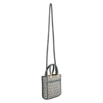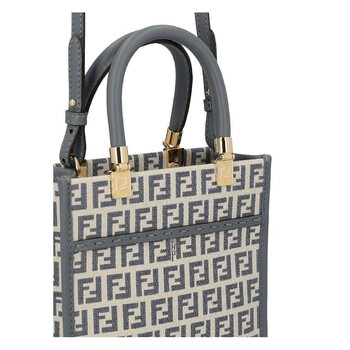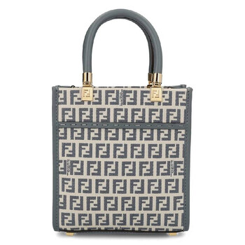 Fendi Ladies Handbag. SKU: 8BS092-ARBN-F1NPH. Color: R.Tempesta/Panna/Os. Size: H: 17cm × D: 5 cm × W: 16cm. Fendi Sunshine Engraved Logo Tote Bag. This bag features canvas with leather trim, an adjustable, detachable shoulder strap, two top handles, an all-over jacquard FF motif, logo-engraved metal feet, a main compartment with an internal logo patch, finished with engraved gold-tone hardware and an open top. Fabric 100%, Calf Leather 100%. Made in Italy.