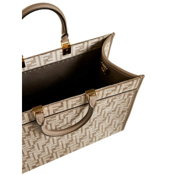 Fendi Ladies Tote. SKU: 8BH386 AQF4 F0E65. Color: Dove Gray. Fendi Sunshine Ff-Pattern Print Tote Bag. This bag features an adjustable and detachable shoulder strap, two rolled top handles and a main compartment. 11.81"*14.17"*6.69". 52% Viscose, 28% Cotton, 20% Polyester. Made in Italy.