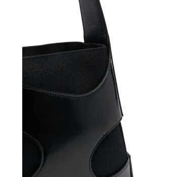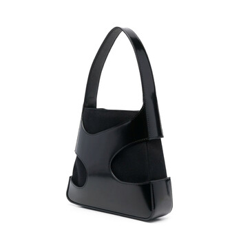 Ferragamo Ladies Shoulder Bag. SKU: 213487 762295. Material: Calfskin;Cotton;Nylon. Color: Black. Size: W:21cm x H:18cm x D:6cm. Ferragamo Cut-Out Calf Leather Shoulder Bag. This shoulder bag features cut-out detailing, a single flat top handle, a concealed magnetic fastening, and a main compartment with an internal card slot. 100% Calf Leather, 70% Nylon, 30% Cotton. Made in Italy.