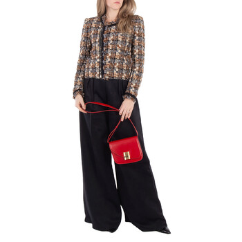 Ferragamo Crossbody. SKU: 215971 769386. Closure Type: Flap. Height 15.5 CM x Length 19.0 CM x Width 7.5. Ferragamo Fiamma Crossbody Bag. This crossbody bag features an asymmetric front flap secured by a clasp, visible stitching along the edges, a flat pocket with slots, and an adjustable shoulder strap. 100% Calfskin. Made in Italy.