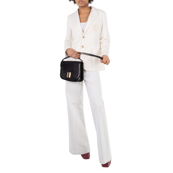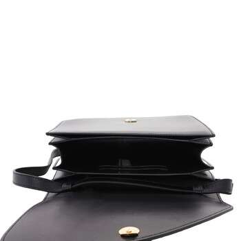 Ferragamo Ladies Shoulder Bag. SKU: 216798 769381. Barcode: 8056283497138. Color: Black. Size: L: 23 x H: 18 x W: 9 cm. Ferragamo Fiamma Small Leather Crossbody Bag. This crossbody bag features an adjustable, detachable shoulder strap, an internal slip pocket, and card slots, it also has a leather lining, a snap-fastening closure at the front. Composition: dappled calfskin. Made In Italy.