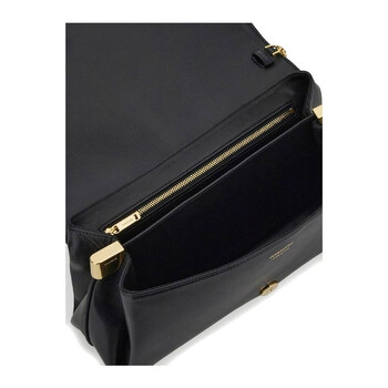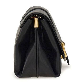 Ferragamo Ladies Shoulder Bag. SKU: 219794 777229. Color: Black. Ferragamo Front Flap Chain-Link Shoulder Bag. This shoulder bag features smooth grain leather, gold-tone hardware, a Gancini buckle, a single shoulder strap, a single chain-link top handle, a partitioned compartment, an internal zip-fastening pocket and a fold-over top with a magnetic fastening. Outer: Calfskin 100%, Lining: Lambskin 100%. Made in Italy.