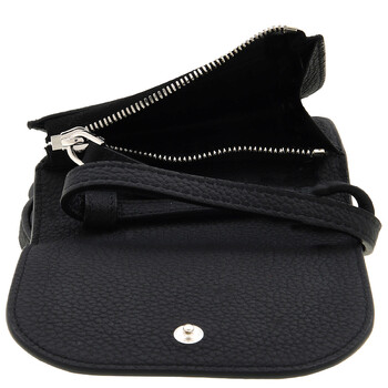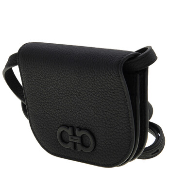 Ferragamo Men's Card Case. SKU: 661129 758221. Barcode: 8057553983795. Color: Black. Size: H3.5 x W4.5 x D1. Ferragamo Gancini Calfskin Mini Bag - Black. Crafted from grained calfskin, this card case features an adjustable shoulder strap, logo hardware on the front, a foldover flap with a press-stud fastening, and a zip pocket with a card slot on the interior.