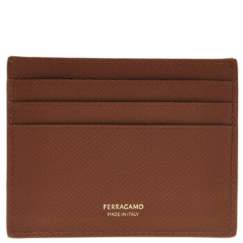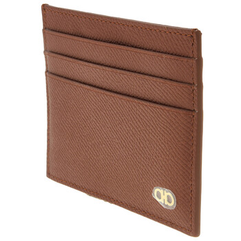Ferragamo Men's Card Case. SKU: 661478 776844. Barcode: 8056283850384. Color: Brown. Size: Height 3.1 IN x Llength 3.9 IN. Ferragamo Gancini Credit Card Holder - Brown. The Gancini credit card holder showcases a minimalist design that highlights the rich texture of hammered calfskin. It features card slots on both sides and is accented with a metallic mini Gancio on the front. Composition: hammered calfskin. Made In Italy.