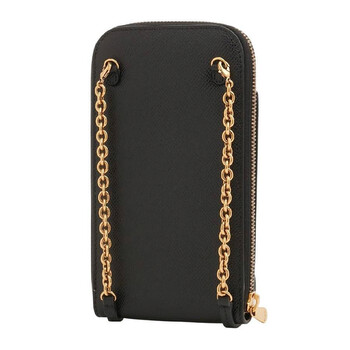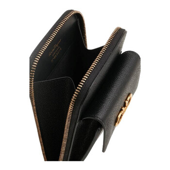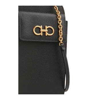 Ferragamo Ladies Phone Case. SKU: 220375 755308 001. Color: Black. Ferragamo Gancini Leather Phone Case. This phone case features a top zippered closure, a front flap pocket, two card slots, a removable leather with chain strap, and gold-tone metal hardware. Composition: 100% calfskin. Made in Italy.