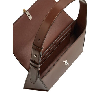 Ferragamo Ladies Shoulder Bag. SKU: 213451 762780. Barcode: 8056283171069. Color: Brown. Size: height 15.5 CM / 6.1 IN x length 32.0 CM / 12.5 IN x width 9.5 CM / 3.7 IN. Ferragamo Geometric Prism Shoulder Bag. This reimagined shoulder bag showcases geometric lines and a sculptural design. Featuring a sleek, minimalist construction, it includes an adjustable shoulder strap and a metal push-lock closure with a Gancini profile. The interior is lined and equipped with double flat pockets for organizing personal essentials. Made in Italy.