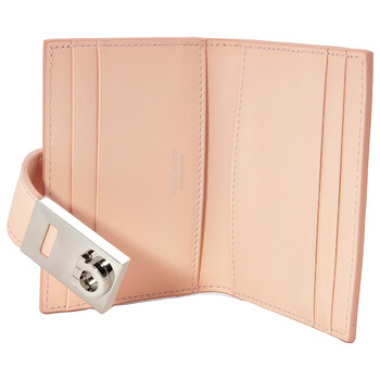 Ferragamo Ladies Card Case. SKU: 220552 770884. Barcode: 8056283514897. Color: Pink. Ferragamo Hug Credit Card Holder. This card holder features a gancini clasp, four card slots, external and internal pockets and brand's logo. 100% Calfskin. Made in Italy.