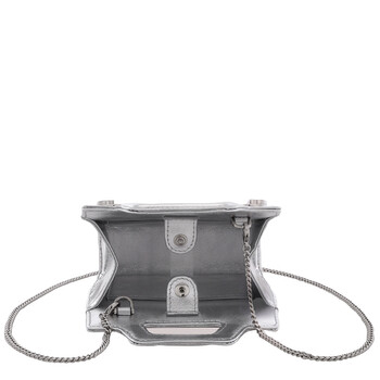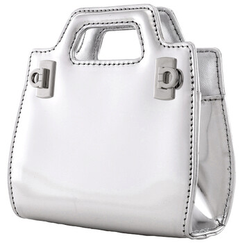 Ferragamo Ladies Crossbody. SKU: 213984 769156. Barcode: 8056283493598. Color: Grey. Size: H: 4.5" x W: 5" x D: 2". Ferragamo Ladies Grey Wanda Micro Crossbody Bag. Featuring dial top handle, double Gancini buckle, detachable shoulder strap, and one main compartment. Material: 100% calf leather. Made in Italy.