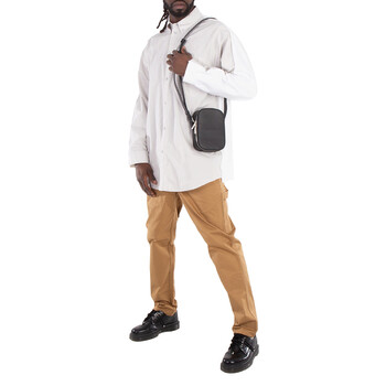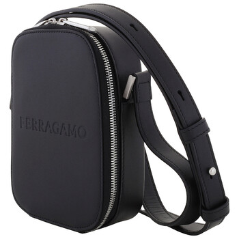 Ferragamo Men's Shoulder Bag. SKU: 241469 769601. Color: Black. Size: L 19cm x H 14cm x W 5cm. Ferragamo Logo Embroided Shoulder Bag. This shoulder bag features an embossed logo on the front, a two-way zip fastening, a single shoulder strap, a main compartment and multiple internal slip pockets. Outer: Calfskin 100%, Lining: Fabric 85%, Calfskin 15%.