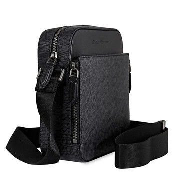 Ferragamo Men's Crossbody. SKU: 24A089 704089. Color: Black. Size: H: 8.2" x L: 6.6" x W: 2.7". Ferragamo Revival 3.0 Crossbody Bag Black 24A089 704089. Compact crossbody bag, lined inner compartment, front pocket that can be extended via two zips. Hammered calfskin leather. Made in Italy.
