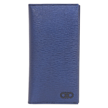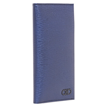 Ferragamo Revival Gancini Breast Pocket Wallet Navy 66A071 704928. Breast Pocket Wallet, Small Iconic Gancini black plaque in front, bill compartments, several credit card slots. Embossed calfskin leather. Size height 7.4 IN length 3.7 IN. Made in Italy.